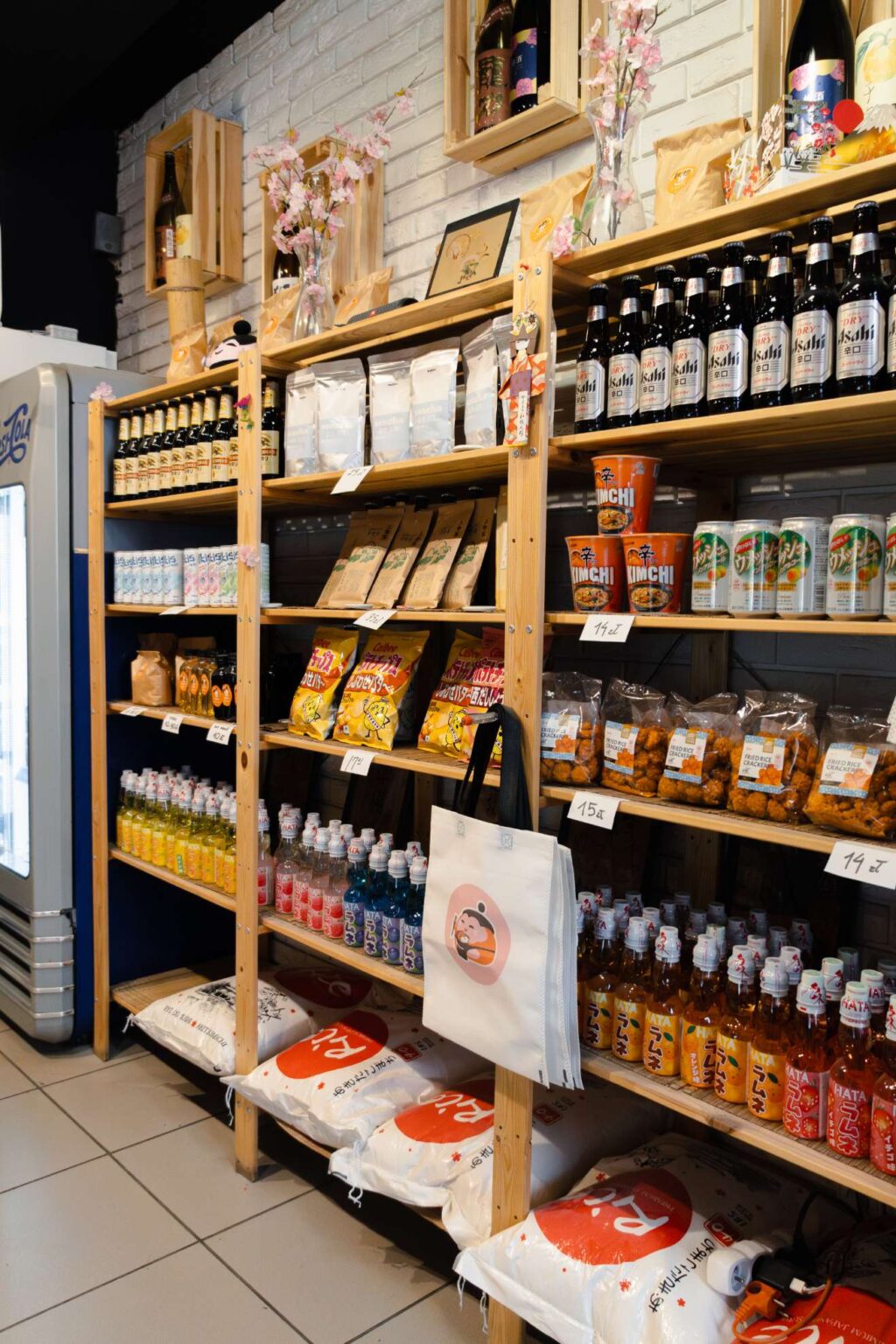 Przy lokalu na Karmelickiej działa również mały japoński market. Możecie wpaść po ulubione słodycze, zupki instant, ryż i inne produkty prosto z Japonii, a także wybrane alkohole, w tym różne rodzaje sake.