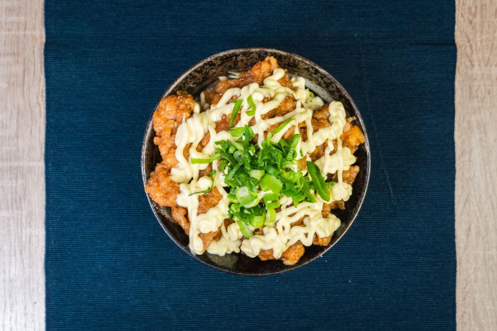 kurczak / sałata / majonez / cebula dymka / dashi / ryż